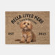 Cavoodle Gepersonaliseerd Hondenliefhebber welkom deurmat. Deze welkomstmat kan worden gepersonaliseerd met de naam van uw hond, de slogan kan ook worden gewijzigd of u kunt een afbeelding van uw eigen hond gebruiken (zorg ervoor dat het doorzichtig is). Tekst: Bella woont hier... Alle traktaties welkom Bewerk het ontwerp om lettertype, kleuren en achtergrondkleur te wijzigen. Gebruik bij het vervangen van het afbeelding van uw hond een doorzichtig afbeelding. Maakt een geweldig cadeau voor een housewarming party, feestdagen, hondenliefhebbers en de meeste gelegenheden.
