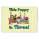 Conception de chiot T-shirts 3e anniversaire, costumes, magnets, cartes, sacs fourre-tout, boutons 3e anniversaire, et plus avec bougies d'anniversaire, un adorable chiot brun, un casquette de fête, et beaucoup de gâteries d'anniversaire! Texte : "Ce chiot a 3 ans !".