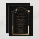 Celestial Black Gold Sun Moon Astronomy Quinceañera Invitations beschikt over een sierlijke gouden zon, maan en sterren met een gouden lijst op een zwarte achtergrond. Binnen is uw aangepaste Quinceañera uitnodiging informatie. Personaliseer door de tekst in de tekstvakken te bewerken. Ontworpen voor u door Evco Studio www.zazzle.com/store/evcostudio