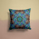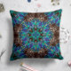 Een gedurfd mandala-motief in turquoise en blauwe dansen over een diepe chocoladebruine achtergrond, waardoor een warm maar levendig accentstuk ontstaat. Perfect voor een aards, gezellig interieur.