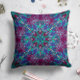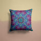 Een stralend mandala-ontwerp in blauwgroen, aqua en violet bloeit op een diep pruimen achtergrond. Dit kussen voegt een luxe pop van juwelen tinten toe aan uw bank, bed of accentstoel.