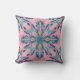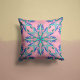 Een dromerig pastelroze kussen met blauwgroen en blauwe mandala-details die balans, plezier en een vleugje speelse elegantie bij u thuis brengen.