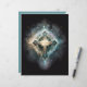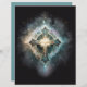Geweldig kruis van goud en blauw met centrumlicht in een wervelwindwolk met sterrenachtergrond.