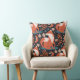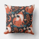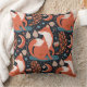 Een rode vos is de belangrijkste eigenschap in het patroon op dit onderscheidende werpen kussen. Het vos afbeelding wordt omringd door boho-achtige bloemen, bladeren, symbolen en halve maan. De belangrijkste kleuren zijn kaneelbruin, leistblauw, tint en blauw van de marine. Beide zijden hebben hetzelfde afbeelding.