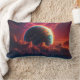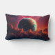 Een adembenemend tafereel van een verre planeet die boven een desolaat buitenaards landschap uitsteekt. De planeet baadt in de warme gloed van een hemelse zonsopgang en werpt dramatische schaduwen over het ruige terrein. Een levendige nevel vult de nachtelijke hemel, wat bijdraagt aan de buitenaardse atmosfeer.