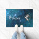 Prachtige , heraldry stijl eenhoorn illustratie geplaatst op de achtergrond van hemellichamen. Pas met naam of andere tekst in witte manuscriptdoopvont aan.