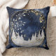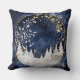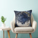 Een betoverende winterscène met delicate gouden accenten die een besneeuwd bos omringen, tegen een diepe hemelsblauwe achtergrond. De combinatie van glinsterende sneeuwvlokken en artistieke penseelstreken creëer is een sereen, op vakantie geïnspireerd ontwerp.