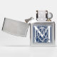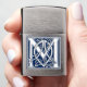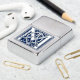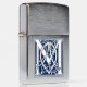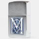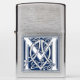 Deze fantastische aansteker is voorzien van een wit initiaal M dat is verlicht met Keltische drakenkoppen en het kloonwerk. De draken zijn grijs en de achtergrond is donkerveldig blauw.