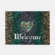 Celtic Heart Mandala in Green en Gold Original Doormat. Een goudvormig Keltisch Heart Knot in een kleurrijke metalen mix van groen, goud en paars in het midden van een groen, blauw, lavender en goudmandala boven zwart, wit of metallisch groen. Celtische knopen zijn een traditionele Keltische kunstvorm, met name gekenmerkt door het feit dat ze geen begin en geen einde hebben, die de eeuwige liefde en de eindeloze levenscyclus symboliseren. Ze zijn een favoriet symbool geworden in veel culturen en beschavingen over de hele wereld en met veel toverbeoefenaars van magie of mystiek vandaag de dag. De Keltische Heart-knoop is een eindeloze knoop in de vorm van een hart en vertegenwoordigt eeuwige en eindeloze romantische liefde.