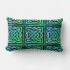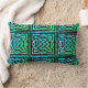 Een lumbale kussen van een blauw-groene Keltische knot zwelt het herhaaldelijk ontworpen tegel tegen een zwarte achtergrond.