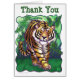 Animal Parade Cute Tiger Personnalisé Anniversaire Invitations, Cartes, Cadeaux, Fête Favors et bien d'autres sont pour le côté amusant de vous avec notre art original d'un tigre lunatique debout dans une jungle verte ombragée avec un ciel texturé jaune et vert une bordure ondulée vert foncé et ludique. Peint par Traci Van Wagoner, notre artiste talentueux pour enfants, notre programme de fête à thème animal sauvage est parfait pour les amateurs de tigres de tous âges. Sur la plupart de nos fanfaronnades animaux sauvages, vous verrez le mignon tigre du Bengale aller et venir avec cette amusante illustration de la tête du tigre mignon sur le devant et la queue du tigre idiot sur le dos. Rejoignez la Parade des animaux et jetez un bain rempli d'animaux à votre enfant avec nos têtes amusantes et queues tigre de l'équipement de fête d'anniversaire thème. Pour démarrer votre fête, envoyez une invitation à tous les amis de votre enfant qu’ils ne peuvent refuser. Passez un moment merveilleux ! Roar !