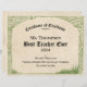 Certificaat van Uitmuntendheid voor de Beste Leraa