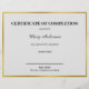 Alle tekst kan worden bewerkt op dit certificaat van voltooiing. Een regel staat onderaan voor de naam van de ondertekenaar. De gouden rand is niet gemaakt van folie.