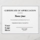 Dit is een sjabloon voor een 'certificate of appreciation'. Het bevat tekst die u kunt bewerken om de naam van de ontvanger te shows in een elegant script. U kunt ook de andere tekst bewerken om de prijs aan te passen voor uw gelegenheid en organisatie. Er is een regel voor degene die de prijs geeft om aan te melden. Je kunt ook de naam en titel van die persoon onder de regel laten drukken. Aan de onderkant bevindt zich een afbeelding dat u kunt vervangen door de logo van uw organisatie. Het papier is wit. De tekst is zwart.