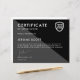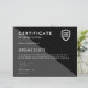 Un simple modèle de certificat de logo d'entreprise dans un style minimaliste moderne. Le modèle polyvalent peut être customisé avec le type de bourse (certificat d'achèvement, d'appréciation, de reconnaissance, etc.) et d'autres détails pour reconnaître les réalisations ou la réussite d'un cours ou d'une tâche pour tout employé.