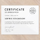 Un simple modèle de certificat de logo d'entreprise dans un style minimaliste moderne. Le modèle polyvalent peut être customisé avec le type de bourse (certificat d'achèvement, d'appréciation, de reconnaissance, etc.) et d'autres détails pour reconnaître les réalisations ou la réussite d'un cours ou d'une tâche pour tout employé. Vous pouvez télécharger une signature personnalisée ou supprimer et signer à la main.