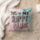 C'est mon endroit heureux Coussin arrière - plan tourbillon coloré avec le dicton "C'est mon endroit heureux" en face.
