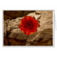 De fragiele schoonheid van een rode roos hier gemaakt door een mozaïek van kleine afbeeldingen rode rotswoestijnmuren, gezien tegen Chaco Canyon petroglyphs