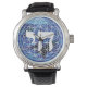 Draag de essentie van het leven en spiritualiteit op je pols met dit elegante Chai (חי) polshorloge, met het heilige Hebreeuwse symbool tegen een betoverend levensboom geïnspireerd patroon. De diepblauwe tinten geven een gevoel van sereniteit, terwijl het slanke zilveren hoesje en de echte lederen band een vleugje sophisticatie toevoegen. Dit horloge is ideaal voor alledaagse draag of speciale gelegenheden en combineert traditie naadloos met moderne stijl, waardoor het een symbolisch en stijlvol uurwerk is voor elke gelegenheid.