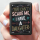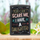 Een bord met een kleurrijke, met de hand getekende boodschap dat You Cant Scare Me, I Have A Daughter.