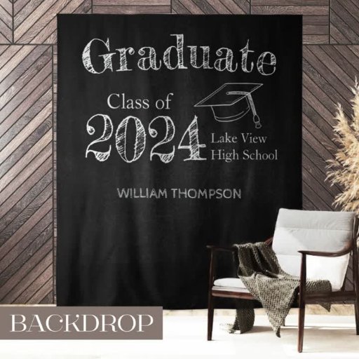 Met deze schattige achtergrond vieren we het harde werk en het succes van je afgestudeerde! Deze achtergrond is voorzien van een unieke combinatie van krijttypografie en moderne ontwerpelementen en zorgt ervoor dat uw gasten enthousiast worden over het feest. Laten we u helpen om op deze speciale dag een onvergeeflijke ervaring te creëer voor uw afstuderen en hun vrienden.