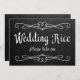 Eenvoudig en elegant krijtbord stijl "Wedding Rice Alsjeblieft, neem een" trouwbord. Dit is een vlak gedrukt 5-inch x 7-inch kaartbord, dat er echt elegant uitziet in een afbeelding lijst.