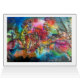 Origineel grafisch ontwerp door Alessandro Lumini Colorful en expressieve waterverf schilderij 1988 .Knight die op horseback in fel blauw groen, roze, fuchsia, paars, oranje geel, wit, bruin kleuren ruikt.