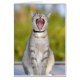 Photo Extraordinaire d'un chat rayé assis droit, avec la tête en arrière et la bouche ouverte comme si chanter.
