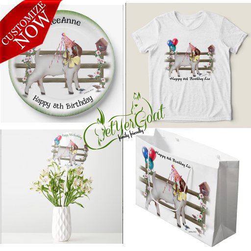 Cette adorable chèvre d'anniversaire boer est prêt pour une fête - avec ballons et un casquette de fête d'anniversaire - parfait pour la fête d'anniversaire de chèvre