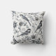 Dit accentwerpkussen is versierd met een charmant Frans geïnspireerd toiletontwerp, met prachtige vogels in tinten van houtskoolgrijs te midden van gebladerte in grijs en zwart.