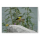 La photographie de nature, d'un chardonneret masculin alimentant sur le chardon fleurit à la rive d'un lac, orne cette carte--masquez l'intérieur pour votre propre note personnelle.