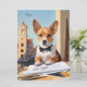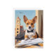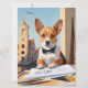 Voeg een vleugje architecturale charme toe aan uw ruimte met deze prachtige kunstprint van een corgi die als architect in een stedelijke omgeving is gekleed. Ideaal voor hondenliefhebbers en architectuurliefhebbers.