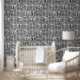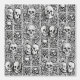 Druk uw Gothic esthetisch uit of versier voor Halloween met dit zwart-wit ontwerp geïnspireerd op de kaarsenhuizen van gotische kathedralen. Witte schedels net uit stenen nissen gesneden met wijnstokken.