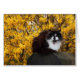 J'adore ce beau chat aux cheveux longs ! Sa magnifique fourrure noire et blanche contraste agréablement avec les fleurs de forsythie jaune vif. N’aimez-vous pas les marques sur son visage et son menton tout noir ? Sa mère savait vraiment comment utiliser une brosse à peinture !
