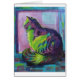 Peinture originale d'un chat coloré et psychédélique se reposant dans une fenêtre sur le divers habillement et d'autres articles