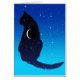 Carte de note dans une silhouette d'un chaton assis élégant, modelé d'un ciel étoilé et d'une lune de croissant sur un bleu du soir, arrière - plan étoilé