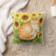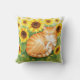 Chat de gingembre mignon avec Coussin de tournesol Fleur florissante