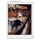 Un chat marche sur la balustrade d'un bâtiment médiéval. Illustration par Arthur Rackham.