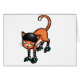 Une carte de voeux vierge comportant un chat tigré orange de bande dessinée portant 2 paires de fait du patin à roulettes, des chaussettes noires et blanches de stripey et un casque de sécurité.