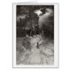 Vue d'un château médiéval, avec son toit perdu dans les nuages d'un ciel orageux. Illustration par W.L. Taylor.