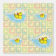 Draai de gele rubbereend rond de bubbels in een bad en wacht op zijn volgende avontuur. Een funky patroon van kleurrijke vierkantjes en cirkels op een gele basis creëer een leuke achtergrond voor de bellerende ingesloten scène.