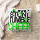 Cheerlead Pillow met Jump, Stunt, Tumble, Cheer en silhouettes in groen en zwart.
