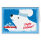 Cute ours polaire avec chef casquette qui sert un dîner de flocons de neige sur cette carte de Noël culinaire pour les chefs, la restauration, les restaurants et autres pros de nourriture ou de cuisines.