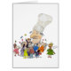 Un chef de bande dessinée avec son casquette énorme obtient a emporté par quelques mangeurs très satisfaisants. Les personnes drôles de bande dessinée portent notre chef français dans des applaudissements épicés. Dites les souhaits délicieux, ou la fève Appetit, ou le Buon Appetito ! Un mademoiselle tout à fait heureux indique "le delicieux mmmmmm".