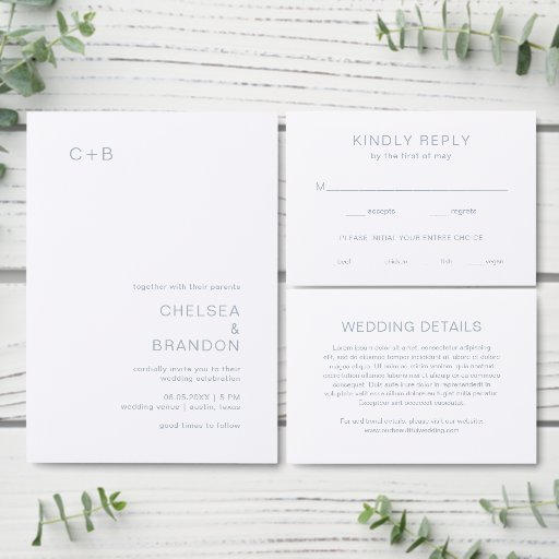 Chelsea Dusty Blue Modern Wedding Invitation