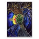 Un loup et une corneille chantent ensemble la nuit par le chêne de nuit.