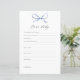 Cher Baby shower bébé carte de jeu avec Bleu Bow