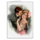 Design vintage avec un jeune homme qui tient doucement sa dame dans ses bras et chuchote des douceurs. Magnifique scène de couple romantique.