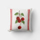 Deze Cherries Pillow is voorzien van mijn acrylverfafdruk van een kersenbos met twee rode en witte strepen.