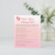 Ontdek wie echt de moeder-to-be beste kent met dit leuke en hartverwarmende baby shower spel! Deze activiteit is een prachtige manier om de eregast in de schijnwerpers te zetten en wat lachen en verhalen te delen. Gasten zullen een knaller hebben bij het beantwoorden van vragen over de favorieten, verlangens en geschiedenis van de mama-to-be. Het is een persoonlijk en boeiend spel dat zeker een hoogtepunt van het feest zal zijn. Met ons elegante en zoete roze kersenbloesem bloemontwerp, zullen deze spelkaarten prachtig mengen met uw feestdecor. Dit spel maakt deel uit van ons samenhangende kersenbloesem collectie - zorg ervoor dat u door de bijpassende items bladert voor een perfect vormgegeven evenement.